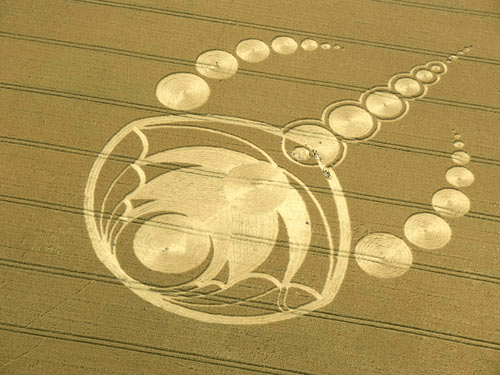 5. El Dr. Horace R.Drew, quizá el mejor decodificador de crop circles del mundo sostiene la teoría de que este diseño es una metáfora de la aparición deVenus en el horizonte desde una perpectiva invisible a una perspectiva visible desde la tierra. La metáfora se ampliaría con las extrañas aletas dorsales de la esfera que recuerdan al pez llamado SunFish. Venus aparecería»nadando» en nuestro horizonte en una metáfora elegante, sorprendente y con sensibilidad naturalista. Una manera de explicar un fenómeno astronómico que denota inteligencia y sabiduría sobre las especies que pueblan el planeta tierra.