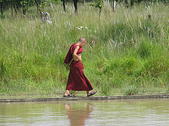 monjes budistas caminando
