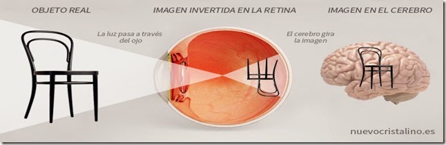 Los ojos son lentes que pasan información desde la retina hasta el cerebro, que es donde se forma la imagen. Son como las ópticas de las cámaras que dejan pasar la luz, esos haces energéticos que existen ahí fuera, y los envían hacia el interior de la cabeza para procesarlos, sin hacer, en ningún momento, juicios o presunciones sobre que representan.
