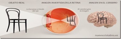 Esta luz que ha traspasado la pupila llega seguidamente al humor vítreo, una especie de masa gelatinosa que tenemos todos detrás de la pupila y, finalmente, el haz lumínico llega a la retina que captura la imagen, pero, lamentablemente, lo hace solo en dos dimensiones y al revés, por lo que, para poder terminar de discernir qué es lo que estamos viendo, la luz es enviada al cerebro en el lóbulo occipital.