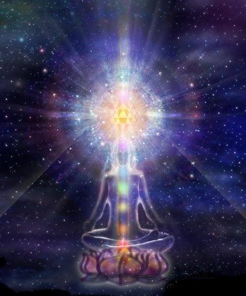 Vas a imaginar cómo tu coronilla se abre y empieza a recibir energía. Visualiza el chakra de la corona completamente abierto, como un sombrero puesto del revés. Imagina también la matriz cristalina como un campo de luz, como una inmensa rejilla de luz por encima de tu cabeza; se trata de una red que, aunque se encuentre alejada de la tierra, sostiene todas las improntas energéticas procedentes de ella.