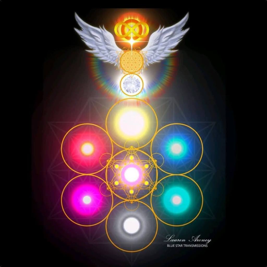 Estas doce esferas de luz están alineadas a lo largo de nuestra columna vertebral desde el chakra de la corona en la parte superior de nuestra cabeza hasta el chakra raíz en la base de nuestra columna vertebral.